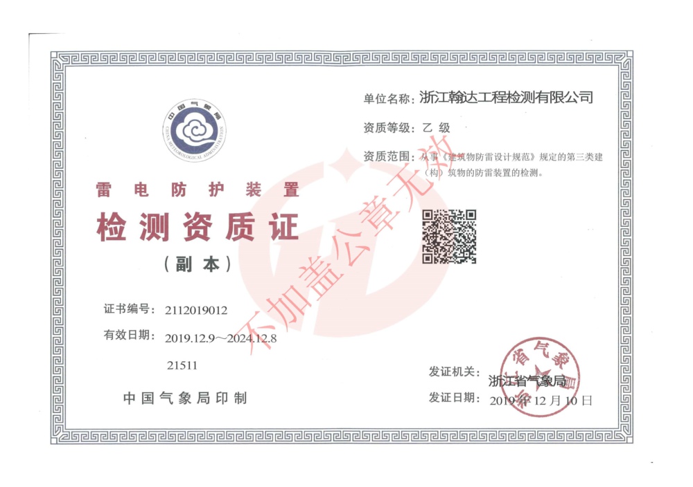 雷電防護(hù)裝置檢測資質(zhì)